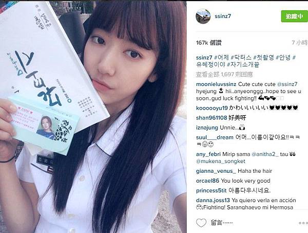 因為《Doctors》講到學生時代,朴信惠在開拍時就在IG曝光最新造型,好學生唷!!!一臉就是女孩樣